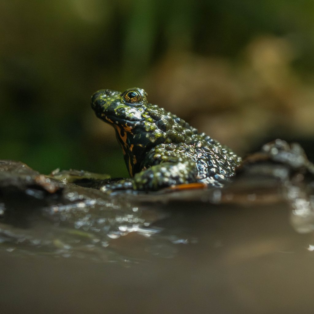 The Fire-bellied Toad is a small, brightly coloured amphibian known for its vivid red or orange underbelly—an unmistakable warning to predators. Although called a “toad”, it has many frog-like features. These toads are lively, hardy, and often found in shallow ponds, where they display unique defensive behaviours, such as arching their backs and showing off their warning colours when threatened.