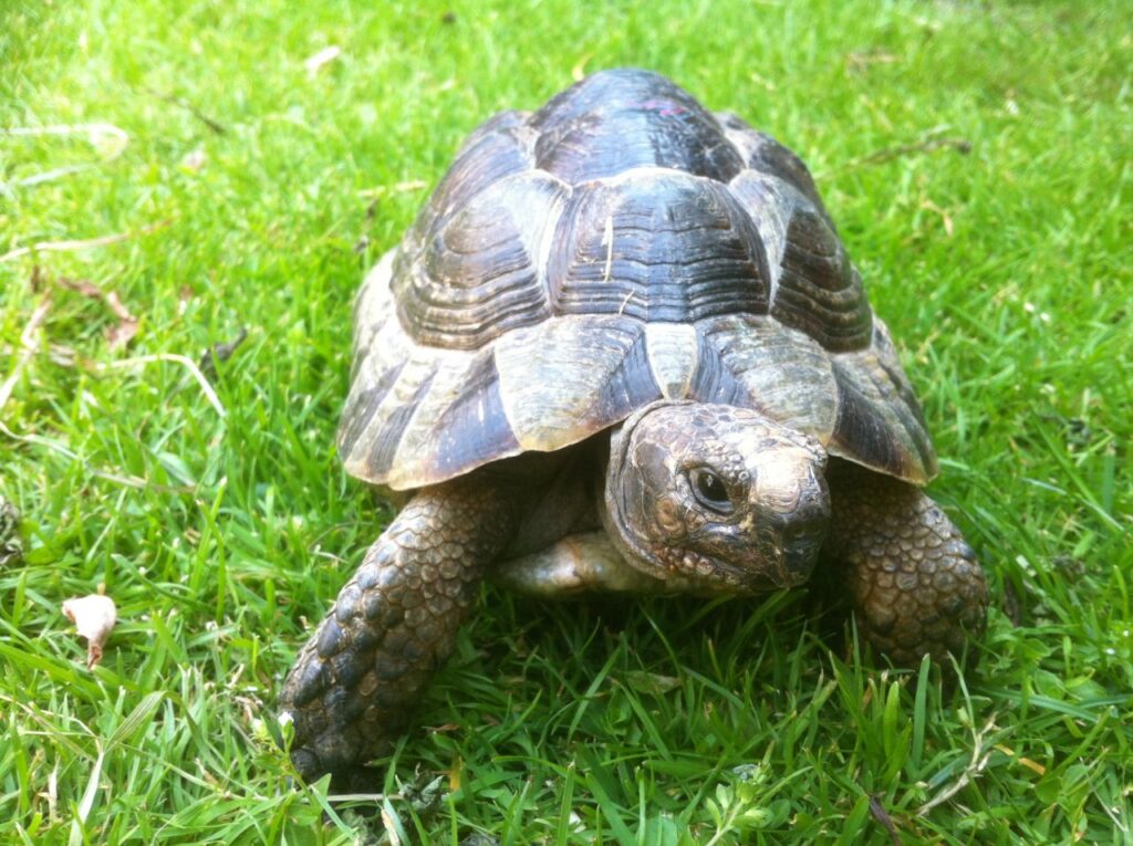 They follow the same breeding pattern as the Hermann's. One successful mating will allow the female to lay eggs multiple times. One or two days before egg-laying, the female takes on an aggressive, dominant behaviour, mounting another animal as for copulation and making the same squeaking sound the male produces during copulation. The purpose of this behaviour is to produce respect in the tortoise community, so that the female will not be disturbed by others during egg laying.
